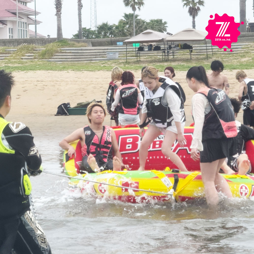 - 後半はみんなでバナナボートでワイワイ!